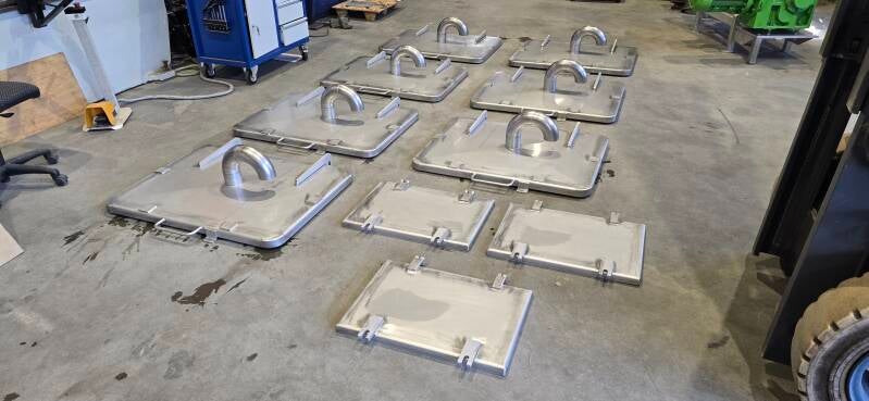 Voor een terugkerende klant hebben wij 11 luiken mogen maken naar ontwerp van het oude model. Deze waren aan vernieuwing toe. De luiken zijn volledig uitgerust met scharnieren, ontluchting en handvatten. Aan de binnenzijde is een strip gelast voor een pakking. Deze luiken zullen geplaatst worden op een bunkerschip.